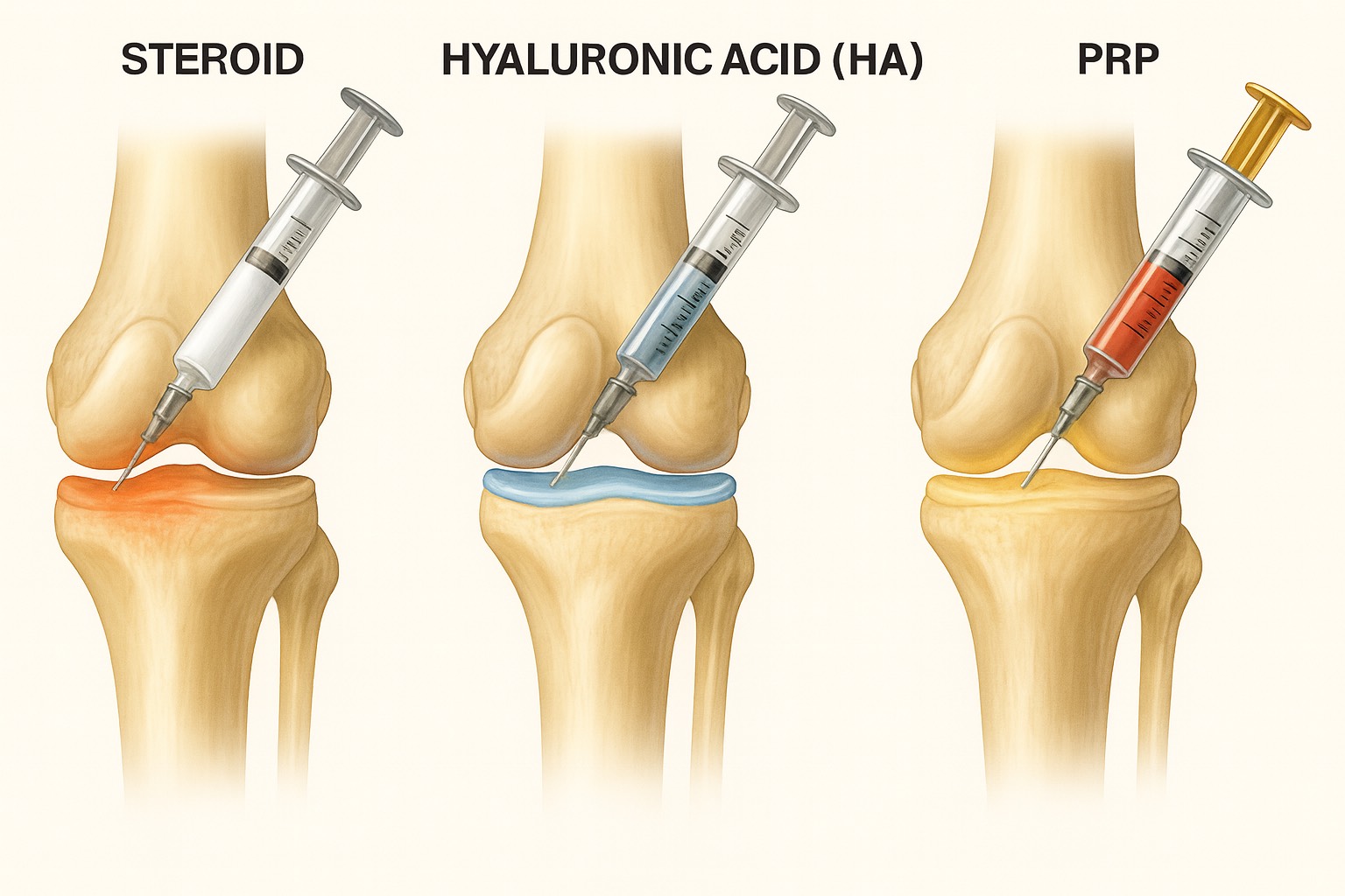 สำหรับผู้ที่มีอาการปวดจาก โรคข้อเข่าเสื่อม การฉีดยาเข้าข้อเข่าเป็นทางเลือกที่ช่วยบรรเทาอาการได้อย่างมีประสิทธิภาพ รวดเร็ว และตรงจุด โดยมียาหลักที่ใช้กัน 3 ชนิด ซึ่งแต่ละแบบมีกลไกและข้อบ่งชี้ต่างกัน
